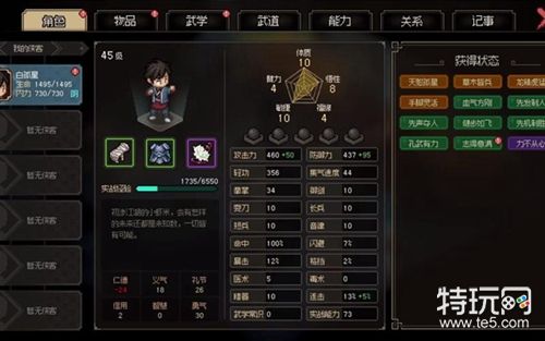4、这样的话体质、臂力、敏捷还能各加上1点,进入游戏之后在武道方面优先加“风”将集气速度和连击率提升上来。