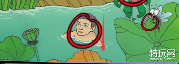 4、最后一个不太好操作,滑动中间枯萎的荷叶往下拉,就能露出合理的人。