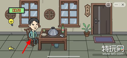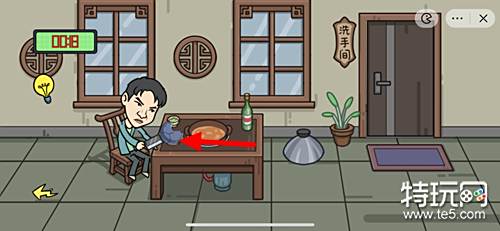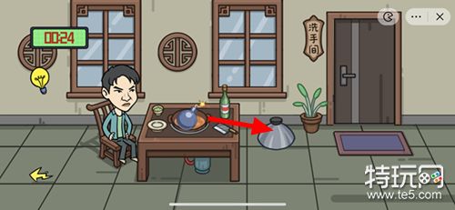 4、将桌子上面的菜刀拖动给人物,他就会拿菜刀把炸弹劈开,然后吃下去。