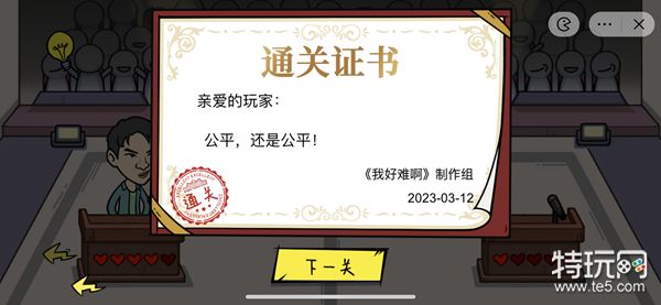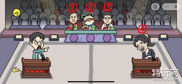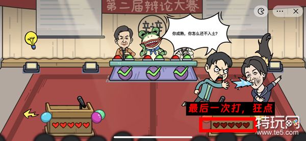 二、成功完成怼人五次之后,评委提示挑战失败,此时我们从左到右一次点击评委。