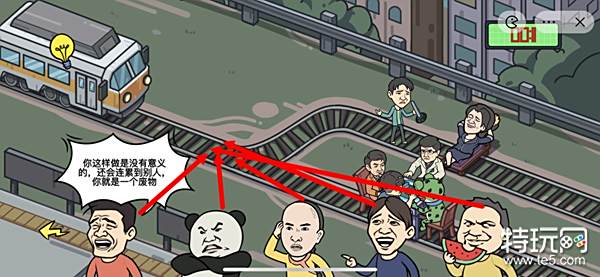 4、将五个人拉动火车前面,让他们挡住火车,最后就完成通关了。