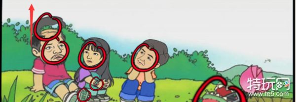 3、将三个人物中最左侧的头发向上拖动,露出秃头,找到不合理的秃头。