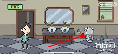 6、进去之后,点击马桶盖打开,然后将人物拖动到马桶上面做好。