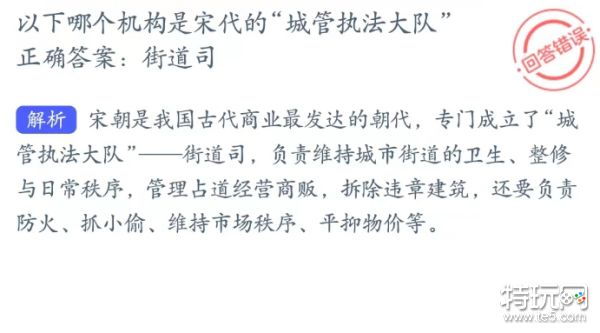 以上便是小编为大家带来的蚂蚁新村小课堂3月10日最新答案,大家可以了解宋代的城管执法大队是哪个机构。