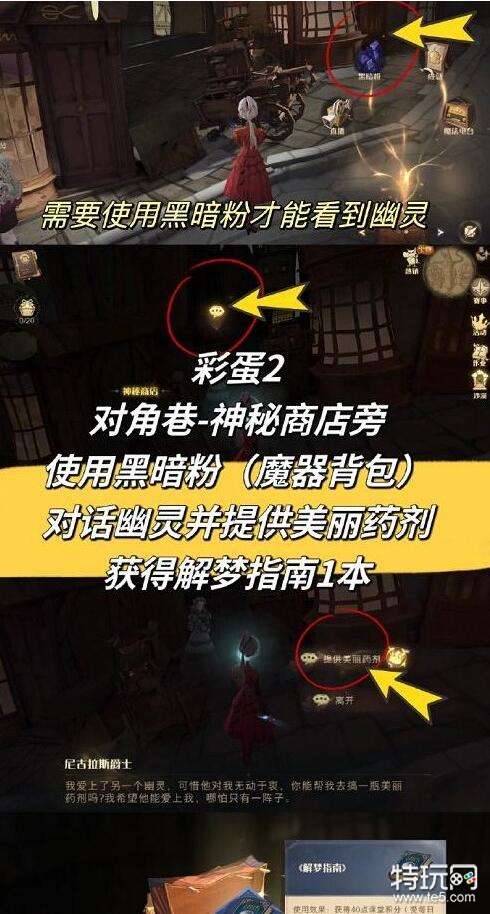 奖励:对话幽灵并提供美丽药剂,可获得解梦指南1本。