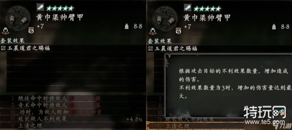 《卧龙:苍天陨落(Wo Long: Fallen Dynasty)》中的赐福词条的数量是很多的,而且都是游戏二周目新增的套装效果,玉晨道君之赐福词条就是其中一个(上清),而这个词条的效果就是可以根据攻击目标的不利效果数量增加造成的伤害。