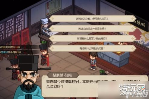 2、来到武馆报名,进行5场战斗,连胜后,可以得到声望+50,再去衙门处打下一场。