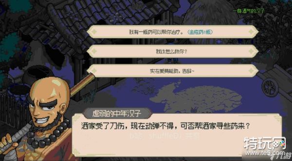 玩家在探索时路上谷堆边遇到个和尚,选1选2都一样 要金疮药。但不用触发剧情,直接交易就能拿金色任务物品。
