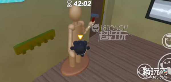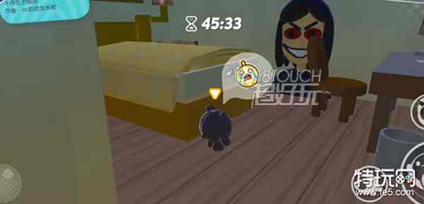 6、新房间的被子下面有遥控器,关闭电视后人偶动作会变化。到厕所洗澡再出来人偶会拿到锤子,把凳子拿过来踩着凳子拿到锤子;