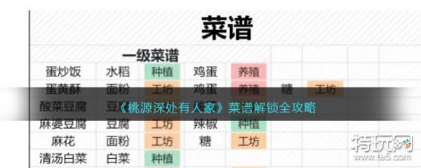 《桃源深处有人家》菜谱解锁全攻略