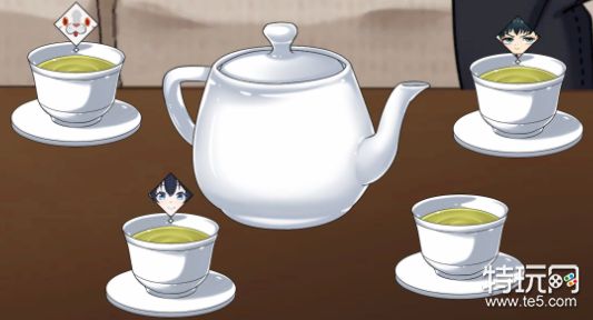四杯茶选两杯,进入不同结局。例如选左边两杯是结局 1,选下边两杯是结局 2(CG 18、19、20)。