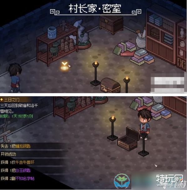 5、使用从村长那里获取的蟠龙钥匙,打开密室中央的宝箱,就能获得牛金牛兽环。
