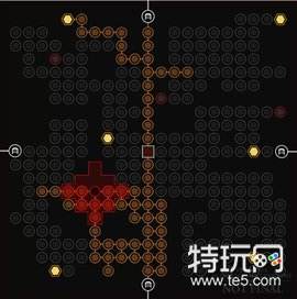 1.暗黑破坏神4的巅峰盘是个正方形的天赋树,正方形的4个边都有一个连接点。每个职业有多个这种巅峰天赋树,每个天赋树有一个特色大天赋(图中的正中间的红色正方形)和一个符文插槽(图中红色十字的地方)还有若干小天赋(yellow)其他黑色的圆点就是给一些+5或+7各种属性点。
