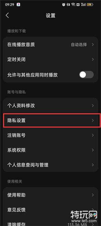 3.在设置页面中点击【隐私设置】;