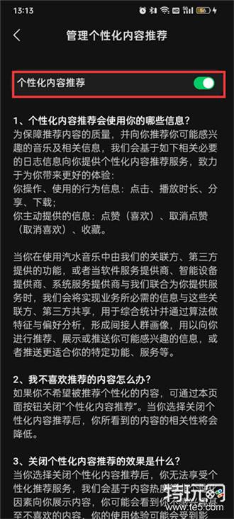 ,汽水音乐个性化内容推荐关闭教程