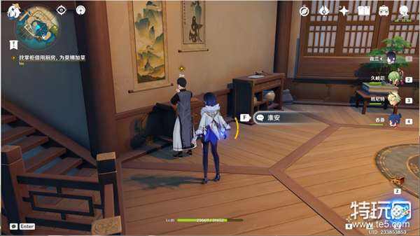 2、进入客栈内,去找淮安对话,给莫娜加几个菜。