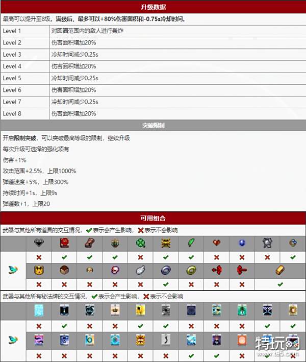 持续时间影响轰炸的时长,伤害面积影响圆圈的大小,弹道速度会增加圆圈的旋转速度,弹道数增加了每次轰炸的炸弹数量,冷却时间减少了两次轰炸之间的间隔。