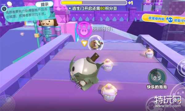 在“欢乐晚宴”玩法中,每局游戏人数共9人,分别为6名逃脱者和3名抓捕者。逃脱者需要努力拾取场地中的蛋糕,获取足够的积分逃出城堡,抓捕者则需要尽力干扰。