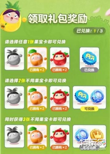 参与抽奖集卡即有机会得,橙留香、上官子怡、菠萝吹雪3种果宝特攻角色卡。集齐1-3张不同角色的果宝,分别兑换3个不同档位的奖励。每位蛋仔每档奖励最多可兑换1份。蛋仔们可以互相交换多余的果宝卡,这样奖励领取的机会就越快啦!