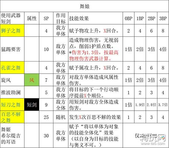 《歧路旅人2》中,舞娘是游戏中唯一的风系魔法的使用者,使用恰当的话,有着不错的强度。她有很多技能,玩家一开始看到会有一定的疑惑,不知道该怎么使用他们。