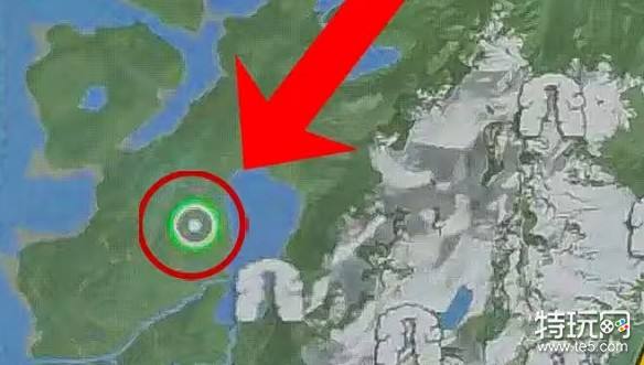 1、玩家需要先在雪山后面靠近海边的绿点处,如下图: