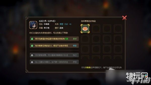 这一点还是上文提到过的“人物卡”的进一步内容扩展,玩家可以与NPC强化关系等级,从友好、亲密到知己,或者是,仇人见面分外眼红的厌恶。友好可以“以物易物”、亲密可以协助战斗、知己则可以邀请加入队伍。
