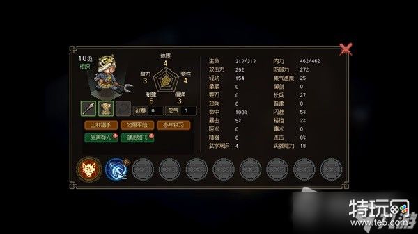 《大侠立志传》在“车卡”环节同样没有让我失望:玩家需要对臂力、体质、敏捷、悟性和福缘进行加点,虽然属性的分类算是RPG老玩家一眼可见的熟悉,但游戏的机制设计并没有停留在这一步——每个属性达到10就有被动加成,比如10敏捷就会每场战斗100集气开始(决定出手速度),然后达到更高的属性值还会有额外的加成。