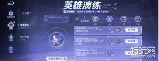 活动规则:选择英雄,完成任务累积演练积分即可获得英雄排位保护卡、英雄MVP加星卡、王者绝悟回城特效、英雄碎片等奖励