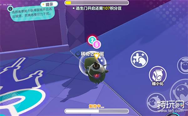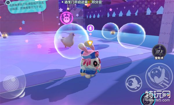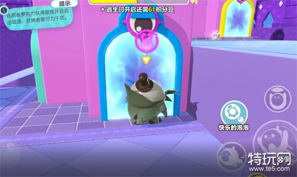 进入游戏,抓捕者自带泡泡技能。一旦释放出的泡泡触碰到逃脱者,即可将其困在泡泡内,并扣除逃脱者阵营一定积分。