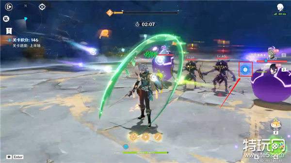 开局夜兰使用大招(元素爆发),接着使用E技能(因为是试用角色夜兰的武器为祭礼弓,有概率刷新E技能,所以当E技能刷新后,建议立刻再次使用)。