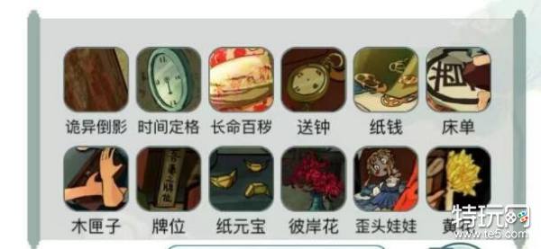 诡异倒影,时间定格,长命百秽,送钟,纸钱,床单,木匣子,牌位,纸元宝,彼岸花,歪头娃娃,黄花