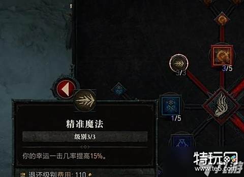 第四列:点出三级的精准魔法,加上两级的火蛇,勾往下面点,后期火蛇有余点加满。精准魔法提高幸运一击的概率。