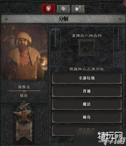 铁匠可以分解装备,也可以升级我们的装备和护甲(不包括首饰)升级武器可以提升伤害,升级防具可以提升护甲。