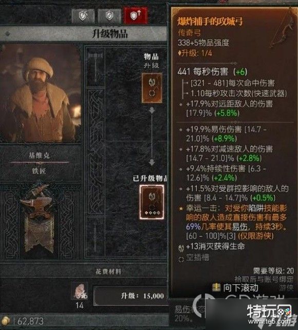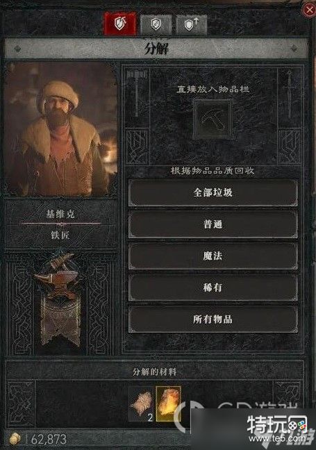 铁匠可以分解装备,也可以升级我们的装备和护甲(不包括首饰)升级武器可以提升伤害,升级防具可以提升护甲。