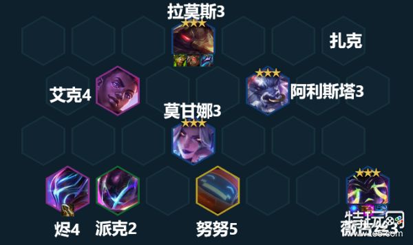 莫甘娜在这套阵容内的定位是提供控制和魔抗&护甲击碎效果。可以帮助薇古丝和副C烬打出更高的输出。