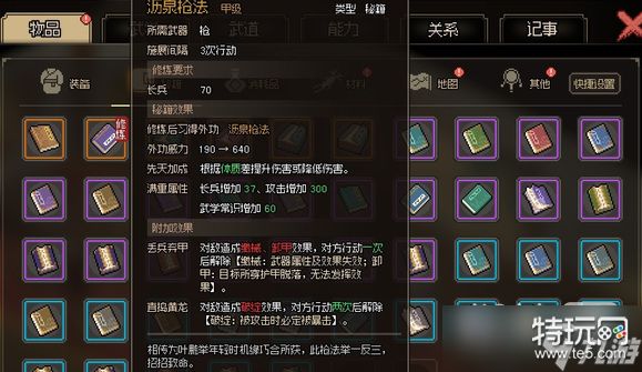 11.武备库有一个杨姓小兵,如果你在无名村的猎户那里打探到了杨家后人的传闻,并且在野狼谷取得了【梨花枪】。那么就可以邀请他入队。带着他回无名地区的破庙,可以发现密室,并获得【梨花枪法】。注意,以后破庙就不能烧香了。反正这里也只能烧丁级香。