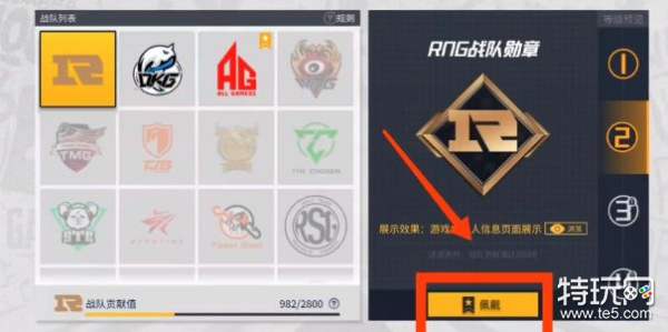 5、第五步:选择不懂等级’的战队勋章,然后点击佩戴,在游戏中昵称前面就会显示勋章图标。