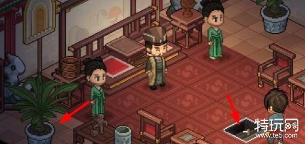 4、成功入赘丁家以后,玩家可以在下图位置找到丁家密室入口。(左侧的花盆激活机关)