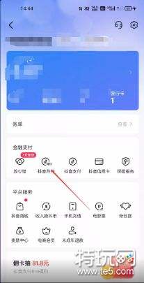 第三步:进入我的钱包主页,在【金融支付】栏目中,用户可以找到“抖音月付”的入口,点击“抖音月付”。
