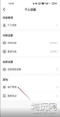 第五步:进入抖音月付的个人设置主页,用户需要在【其他】栏目中点击“账户管理”。
