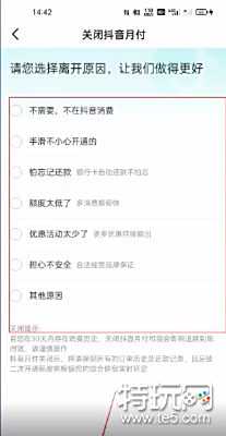 第八步:关闭抖音月付要求用户选择关闭原因,用户可以任意选择其中一个原因,最后点击“提交关闭申请”。