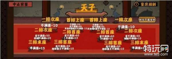 首排上座:不满值-15,若不满值<40,其他同列藩王不满值-10