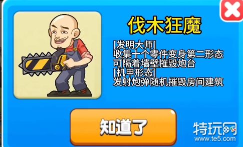 1、开局使用任意角色,攻击大门十次,可获得一个机械零件,收集10个机械零件后即可解锁伐木狂魔皮肤哦;