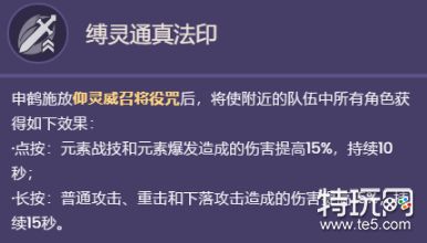 点按:元素战技和元素爆发造成的伤害提高15%,持*10*;