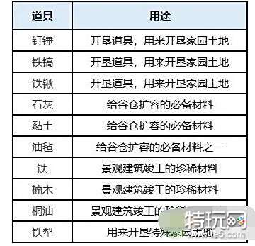 在蒲公英小队带回的收成中有多种用途的材料,各种特殊材料如表格所示