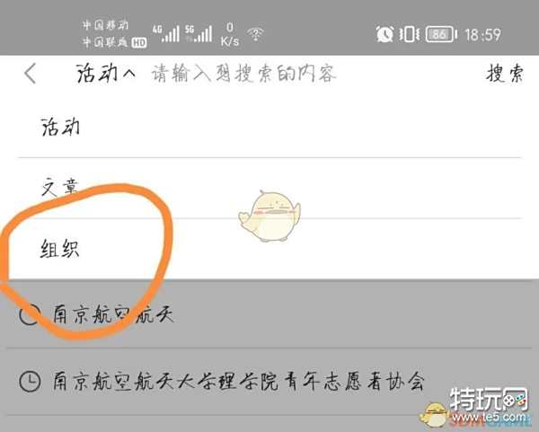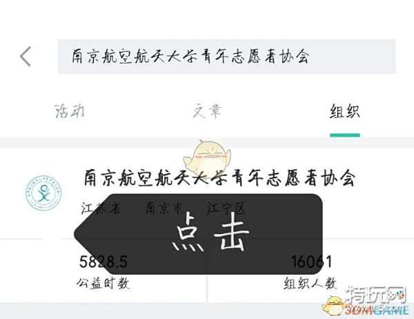 4、输入学校组织名称,如:南京航空航天大学青年志愿者协会,点击加入组织即可。