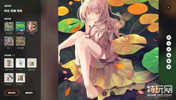 在左下角,在您生成了您的画作之后,您不但可以自己把玩,分享、展出,您还可以将其应用到不同的应用场景之中,这实在是文心一格别具一格的地方。
