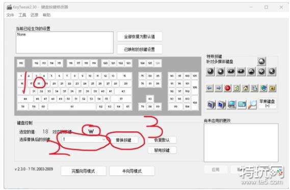 点击“18”(对应w),再点击选择“选择替换后的按键”,选择“T”,再点替换按键