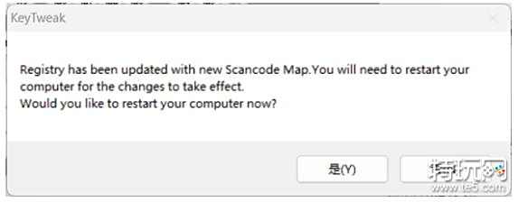 当你确定每一个按键都更改完毕后,点击“是”会重启电脑并完成更改