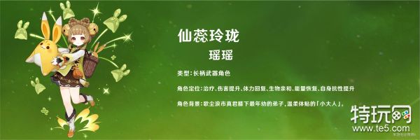 瑶瑶是一名草系辅助角色,她的主动技能会召唤不同形态的仙家机关-月桂,协同瑶瑶攻击或是治疗,治疗会依据前台角色的血量情况做出判断,队友血量少则优先治疗,血量相对安全则优先选择丢萝卜攻击敌人,造成草元素伤害。